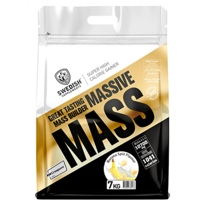 Dette er en meget velkomponeret gainer med masser af indhold. En portion giver hele 58 g protein i kombination med 25 g fedt fra kokos og 146 g kulhydrater. Derudover har Swedish Supplements beriget Massive Mass med en solid dosis kreatinmonohydrat.